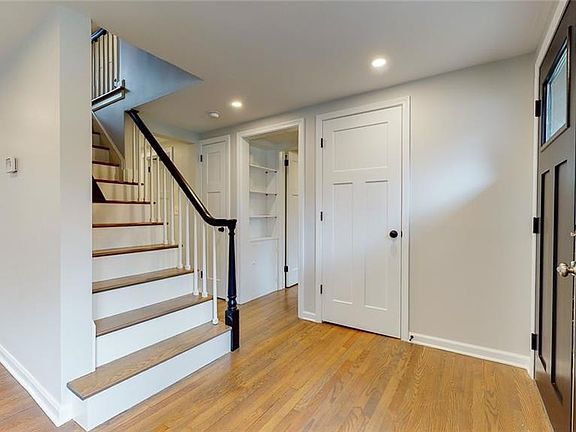 Newly Renovated from top to bottom! This home has been amazingly transformed and is just a short walk to town.The foot print was enlarged to make way for a larger living room, kitchen and 1st floor laundry/mudroom.Enter thru the enlarged foyer and you'll see the lovingly restored original hardwood floors and staircase.Loads of natural light in the large living room with views of both the front and back yards.The Amish built kitchen has beautiful cabinetry, all with soft close doors and matching hardware.The stainless hood compliments the gas stove available in the appliance package that accompanies the home. A cast iron farmhouse sink, custom tile, Quartz counter tops and remote operated LED lighting also adorn the kitchen.The island has room for two.Conveniently located just off the kitchen is the dining room.Perfect for entertaining.There are two nicely sized bedrooms on the 1st floor.The full bath is just steps away and features custom tile, Quartz and custom cabinetry.Upstairs you'll find the master suite .The bedroom features a large walk in closet and sitting area.The Master Bath has an amazing walk in shower and double sink vanity. There is a cozy room at the end of the hall that would make a great tv room or a nursery/bedroom with built ins and ample closet space.The walk out lower level is enormous and includes a large full bath for great additional living space. New 2 car garage,AC,whole house LED,Roof and more. Close to shopping, parks and schools. A must see!
