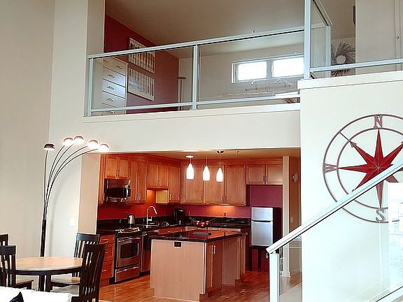 Contemporary penthouse level condo with spectacular river views. Featuring two floors of living space with a bright & inviting aesthetic. Open living area w/ 18' ceilings, gas fireplace, & private balcony overlooking the Columbia River. Kitchen includes granite counters & stainless steel appliances. Loft-style master bedroom, in-unit laundry & ample storage. Carports, secure entry & an elevator. Walkable location just minutes to town, Columbia Memorial Hospital, restaurants and the art scene.