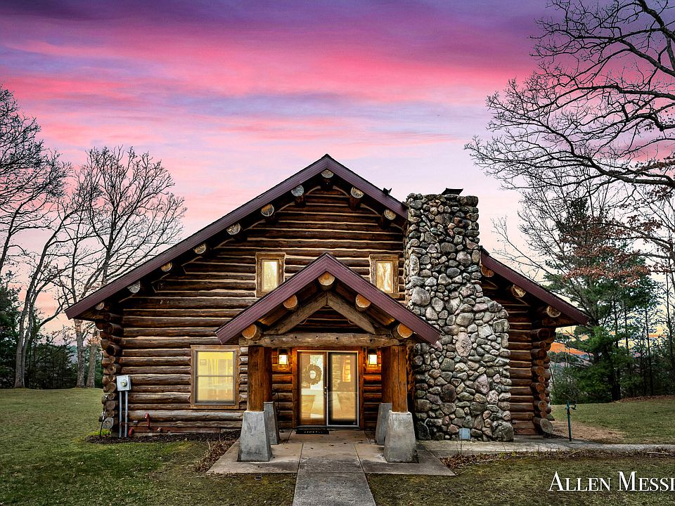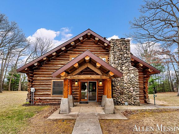 Welcome to 3990 E Croton Drive, a handcrafted Maple Island log home offering over 3,000 sq ft of living space on 10+ acres with over 400 ft of Muskegon River frontage. The open-concept main floor features vaulted ceilings, a dramatic stone fireplace, and expansive windows that capture stunning panoramic views of the river from its elevated perch. A lofted primary suite with private balcony provides a peaceful retreat, while the walk-out lower level offers additional bedrooms, office, and den space. Outdoors, enjoy wooded acreage for trails, recreation, and privacy. With a heated two-stall garage, a secondary toy garage, and an impressive 38x88 heated pole barn for storage, hobbies, or workshop use. Recent updates, including new flooring and a modern furnace, ensure comfort and peace of mind. This unique property blends character, utility, and breathtaking views, ideal as a full-time residence, retreat, or investment.