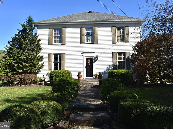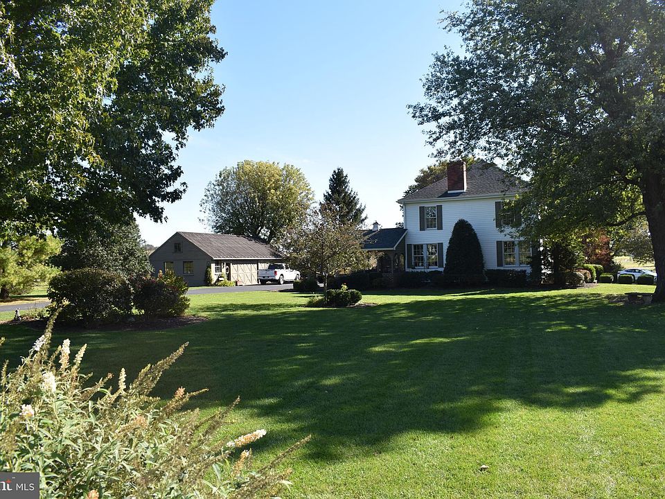 Absolutely Breathtaking 4 bedroom Colonial home on 1.05 acres with detached 2 car garage and workshop plus space that could be in-home retail or office. Buck Run stream runs through property and is stocked with trout. Home has sturdy pine flooring. Large formal living room and dining room share a beautiful brick gas fireplace. Totally updated kitchen withPine cabinets and island and appliances. Main level full bath. Upper level boasts 4 bedrooms and full bath. One bedroom has a private deck to enjoy the views of the stream and valley. Full attic for storage, and full basement. Large screened porch to relax in plus lovely gardens and patio for summer entertaining. Private drive on each side of home.