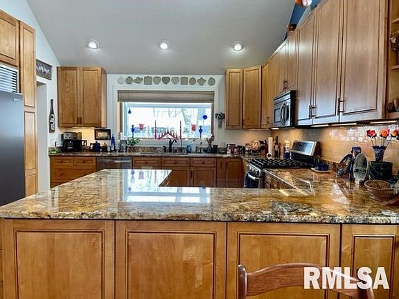 If you love Mississippi River views, sunsets, boating activity and wildlife'this is the home for you. This property is just steps from the river, yet it is not in the flood plain, so no flood insurance is required here. Gourmet kitchen boasts granite counter tops, side by side fridge and freezer and 42' cabinets with pull-out shelves. The spacious living room has a wood burning fireplace with a gas start. The sunroom has a woodstove. The master bedroom has a large closet, and the master bath has a 6 ft soaker tub. Walk out the master bedroom into the hot tub room with a great view of the river. Main level laundry with a stackable washer/dryer. Basement is finished with a bar area/family room with radiant heated floors. Garage is 24 X 30 with heated floors; decks are composed of maintenance free vinyl. 2 balconies with river views, an aluminum pier and a garden shed. 2 from Chicago, 45 min to historic Galena, IL and the new Amazon warehouse. Perfect home for family and entertaining.