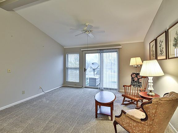 Beautiful condo & convenient location! Top floor unit w/open format, vaulted ceilings & new carpet. All appliances stay, great storage, 2 bed, 2 full bath, w/garage. Deck overlooks pool & park-like setting. Secure entrance. Well maintained community w/pool & clubhouse. Water & trash included in HOA. FHA approved. Pets allowed up to 25 lbs. Move In Ready!