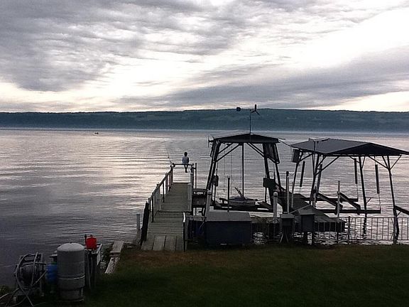 Unique lake cottage. 66' frontage with seawall and ramp. Level lawn area. Permanent dock with two electric lifts. Cottage is cedar inside and out. Easy maintenance. Move in ready. Many furnishing can remain if you wish. Good parking.