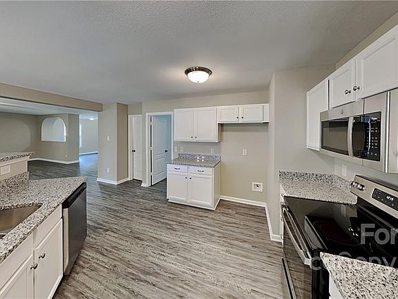 This freshly renovated 3 bed 2.5 bath home is nestled at the end of the cul de sac in the highly sought after Hallstead community in Concord. Upon arrival you will notice an expansive driveway leading up to your 2 car garage & covered front porch perfect for rocking chairs. Off the foyer is an open & spacious family room with built in cabinetry, a beautifully arched wall opening, & a stone gas fireplace. Enjoy a meal in your dining room or elevated bar top that features new granite countertops. The kitchen is equipped with brand new stainless steel appliances (microwave, range, dishwasher), ample storage/counter space and an extended Butler’s pantry. Upstairs there is a spacious loft with lots of natural light that could easily be used as a flex space, each bedroom has its own deep walk in closet, & The primary suite has a garden style soaking tub and separate shower. In the backyard is a screened porch perfect for entertaining and an open yet private yard with a slightly wooded view.