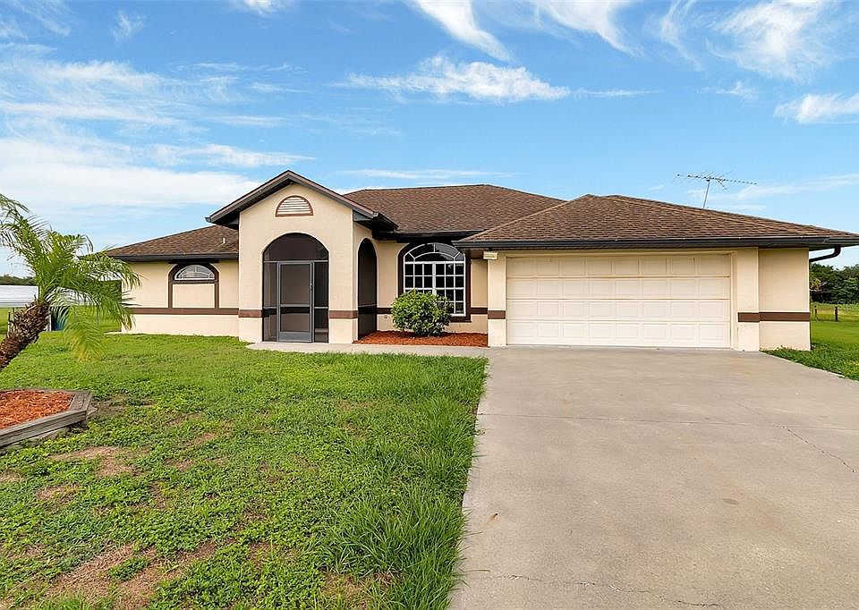 This is about as sweet as we like our tea! If you have been searching for a jaw dropping home on acreage with a pool and barns, your search stops here! Relaxed in feel and stunning in it's presentation, this home flaunts soaring ceilings, a fluid and open floor plan that seamlessly blends the kitchen, dining room and bright and airy living room all into one enormous space, a grand kitchen with plenty of cabinet space and center island, a luxurious primary suite with two walk in closets and a spa-like en suite with soaking tub and separate walk in shower, two comfortably sized guest bedrooms, pristine guest bathroom and full size laundry room with extra storage space! Step out onto your back porch and enjoy views of your sparkling in ground pool and spa along with serene views of native Florida land at it's finest. Bring your farming equipment, animals, gardening tools and make this your own farm. There is a huge barn with stalls and a tack room and another smaller, yet still spacious barn with even more room for animals or equipment storage. Grow your own veggies, raise your own chickens and goats, and thrive outside of the hustle and bustle of everyday life. This property is unmatched and offers a lifestyle of comfort and ease while also being conveniently located with easy access to schools, shopping and I-75. This home has been exceptionally well cared for and a list of all recent upgrades are available upon request.
