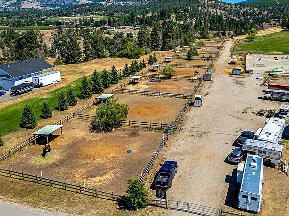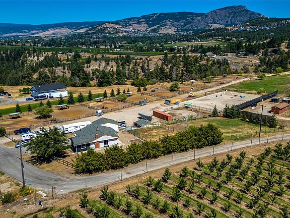Enjoy mild winters & great sun exposure year round on this 5.51 Acre Horse property in SE Kelowna, BC boasting a recently upgraded 3 bed 2 bath house on city water, with garage & shop. Surrounded by orchards & vineyards at the end of a dead-end road, offering peace & quiet with beautiful views. Mission Creek Greenway & Gallagher Canyon access right off the back of the property for trail rides or hiking. Nicely laid out to maximize the use of the property & efficiency of maintenance. Excellent fire mitigation area. The property is completely fenced & cross-fenced. There are 9 double hot wired paddocks with shelters, shade trees & access to a hydrant for each. There are also 6 pastures, a round pen & an outdoor arena. Opportunity to build an indoor arena on the outdoor arena footprint. City water and irrigation front to back. The whole property is well drained. Ample space for parking & maneuvering horse trailers & the farmyard driveway is a good gravel surface. Well suited for a boarding or breeding operation, clinics, training or just enjoy your own private horse heaven! There is a huge tack room that is dry & safe with room for boarders. A large shop provides storage & a dry work area. No home plate which could allow the existing residence to stay and build a new residence at the back view spot. New paint inside & out on much of the house & a new fire rated roof. Fences could be easily pulled to create an orchard. All fields/paddocks were cultivated & rock picked.