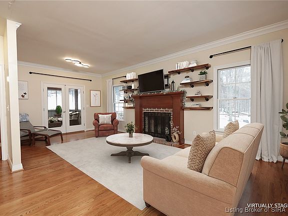 - Description: Vaulted FR w/Brick Hearth Fireplace,Flooring: Wood