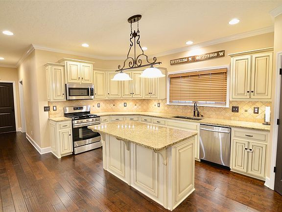 SOUTHSIDE- ACREAGE- TROPHY BASS LAKE- BONUS RM- 3BDRM/3.5BTH Family home situated on 5.6 gorgeous acres +/-. Open family room accented w/ a vaulted ceiling, built-ins, columns & rock fireplace. Beautiful kitchen w/ a large granite BKFST bar, gas stove, stainless appliances & pantry all open to formal dining. Master suite w/ trey ceiling, HIS & HER closets, HIS & HER vanities, custom tile shower, soak tub & water closet. Split floor plan w/ both the other bedrooms having full baths. 1/2 bath for guest. Bonus room over garage! Mud room off garage! Large laundry. Killer outdoor area w/ screen porch overlooking bass, bream & shell cracker stocked lake. Muscadine vine/apple/blueberry/oak trees!