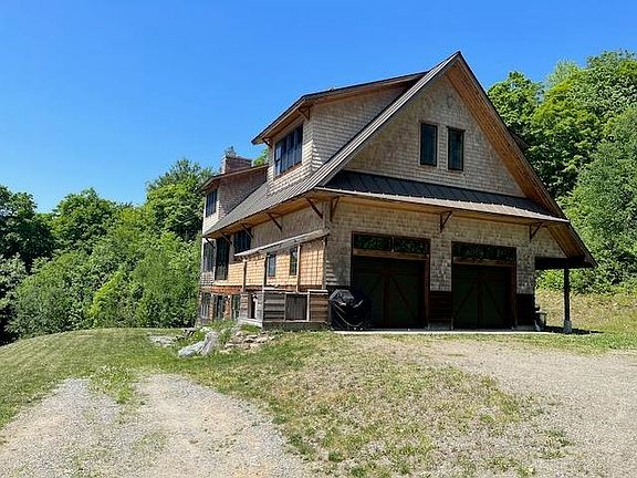 STOWE HOME IN STERLING VALLEY! This partially finished, four bedroom house sits on a very private, wooded, 14 acre lot, just 12 minutes from Stowe Village. The views of the Worcester Range are MONSTROUS, and can be enhanced with additional clearing. The long driveway and dramatic ledge outcropping ensures privacy and tranquility. The house is served by a high yield well and a conventional septic system rated for 5 bedrooms.*** This generously proportioned house is mostly finished on the outside, and features a large brick chimney, an oversized attached garage, a standing seam roof, and extensive fenestration. Piers are in place for a future deck and covered porch. The siding has been left off where the roof for the covered porch would go. *** The main and upper levels of the house (2,880 square feet) are completely framed and insulated. Most of the mechanical systems are in place. The layout has a large great room with direct access to the garage (720 square feet). The upper level is framed for 3 bedrooms (one already drywalled!) and 2 baths, and access to the 10 X 10 cupola. *** The lower level (1080 square feet) has a cozy, finished, 2 bedroom, 3/4 bathroom, apartment with its own entry and wood stove. Even the apartment has excellent views! *** This unfinished palate offers the Sterling homesteader the opportunity to live in the apartment, while putting the finishing touches (estimated retail cost $400-700K) on the forever home!