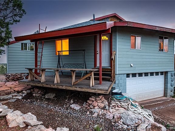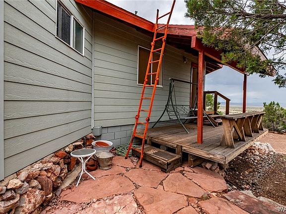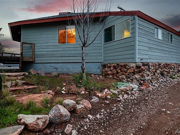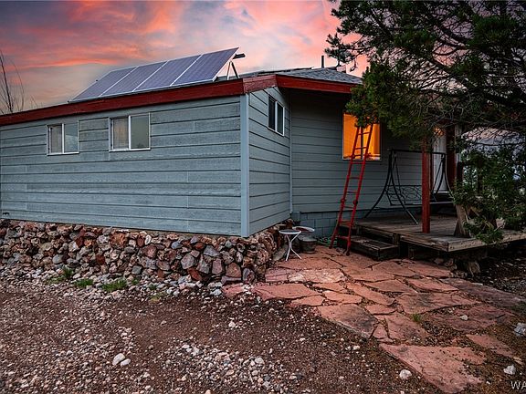 CUSTOM 3/2/3 W/ GRAND CANYON VIEWS ON 40+ ACRES: Located just outside of the beautifully serene subdivision of Antelope Ranches, this truly unique property rests south of the Grand Canyon & Hualapai Indian Reservation off of Historic Route 66 on the Hyde Park thoroughfare. The custom octagon 3 bedroom, 2 bathroom home hosts 2,398 sf of living area & is situated on 41.5 acres. The house, constructed in 1998, features 46' trusses (snow load for 3'), 8" exterior walls, R36 in the outer walls, R38 in the roof, & a 1/2 air insulation gap between the ceiling & roof. Inside, the open concept space is accentuated by 17 vaulted ceilings, knotty pine plank walls, & exposed beams in a chalet style. The kitchen accommodates a large South American wood island, birch veneer cabinetry, a propane stove, 2 refrigerators, marble backsplash, pull-out shelving, & pendant lighting. A wrought iron wood stove helps heat the space, acting as a segue between the casual dining & living area. To the south, the large master bedroom is complete w/ an oversized walk-in closet, & the master bathroom houses dual sinks, a tile walk-in shower, jetted tub w/ marble accents, & ample natural light. Downstairs, a private 3rd bedroom may double as a family room or guest quarters, and has its own 3/4 ensuite. Need parking? The partially subterranean garage can accommodate 3 cars & double as workspace. It hosts built-in benches & shelving, the solar battery bank (16 batteries at 220 amp hours) w/ external venting on a 48 volt system, inverter, & a supply closet w/ the water softener & pump. Outside, 28 solar panels reside on the roof (24 @ 64 watts & 4 @ 220 watts), & are backed-up by a 2003 propane Generac generator. Two propane tanks (1,000 gal & 150 gal) support the home & will convey. The balcony, wrapping around approx. half the house, features stunning panoramic mountain views from the elevated building site that include the north rim of the Grand Canyon. A 46 RV carport is on site, & has septic & propane hookups. The tractor & water truck may convey. Surrounded by natural easy care high desert foliage, this home is just 20 minutes off the beaten path. And for the avid hunter, the property resides in AZ Game & Fish Unit 18A. Perfect for a rural retreat or primary living, you won t want to miss this property. Call your Realtor today for your personal property tour.