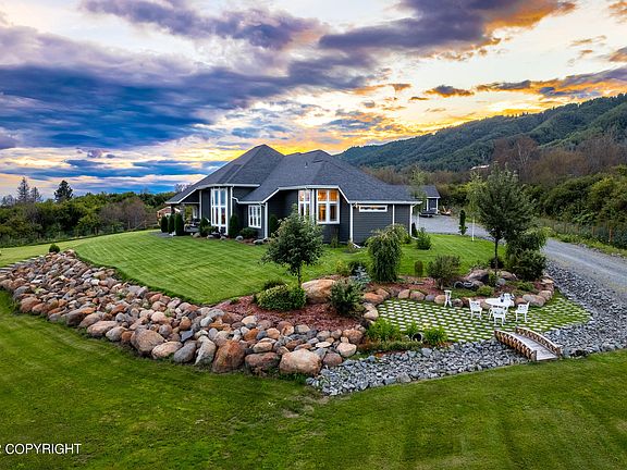 Grand 180-degree Views of Kachemak Bay, Glaciers and the Homer Spit. Palatial Estate constructed with an exceptional eye for detail. LVP Flooring, Granite Counter tops, 14ft Living room Ceilings, Formal Dining area. Impressive Principle ensuite with deep soaking clawfoot tub facing the view. Immaculately maintained fully landscaped 4.95 Acres including Pond, Firepit overlooking the bay.