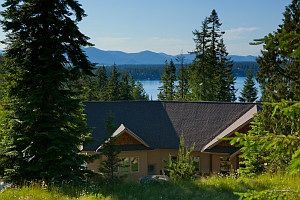 LOOKOUT: Spectacular views of Hayden Lake and mountains from this remarkable and secluded craftsman-style home on 2.6 wooded acres with babbling brook and abundant wildlife. Dramatic entry and great room with wood beam and plank cathedral ceilings. Remarkable spaces in two separate living quarters. Ambience of a natural private retreat minutes from downtown Coeur d Alene and Hayden.