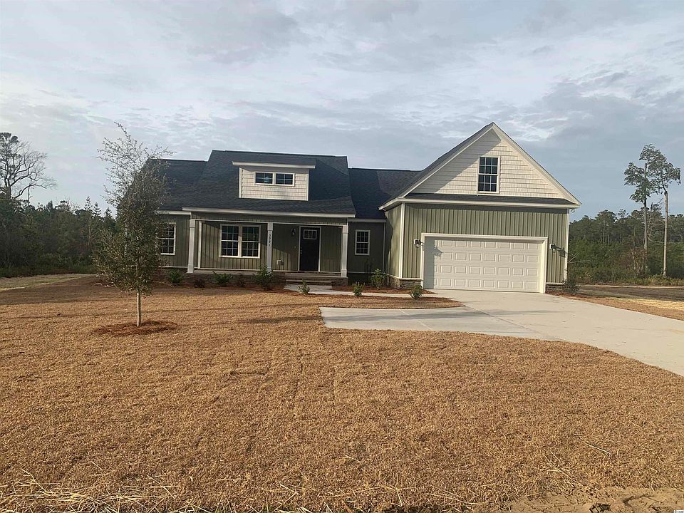 NO HOA. 1 ACRE LOT: FINISHED W/IN 30 DAYS! GRANITE IN ALL 3 BATHROOMS: 4 BEDROOMS: Awesome floor plan. Board and batten. Raised slab foundation; Stone front, 296' Sqft FINISHED BONUS ROOM & FULL BATH PVER THE GARAGE. 5 different plans to choose form. Stainless steel appliances. No refrigerator. Cathedra; ceiling in Great Room and Tray ceiling in Master Bedroom. Private drive. Approx. 55 feet of driveway for ample parking. Lot is 1.15 acres. Screened in back porch. Front porch, patio, pantry, laundry room. Approx. 20 minutes more or less to the beach, Restaurants, Malls and Outlets. NO HOA. All measurements approximate.