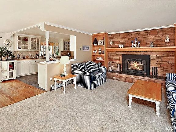 The home features practical like a gas fireplace, and wood floors. A unique feature is the private pond on the property. This is a good option for people looking for a comfortable house with a practical layout and able to manage it nicely.