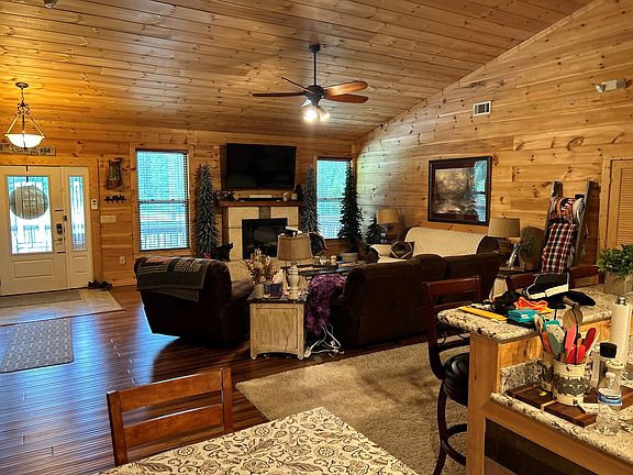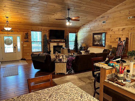 This spectacular home will beckon you with great views of the Tallapoosa River. This 3.8-acre gated property is located conveniently between Montgomery and Auburn, Alabama in Macon County. The fabulous flowing, OPEN CONCEPT footprint, complete with soaring vaulted ceilings and walls with 1x10 tongue and groove eastern white pine planks. The kitchen features custom cabinets met with dazzling granite counter tops and stainless steel appliance package. Spacious PRIMARY ensuite featuring double vanity and walk in closet. Additonal spacious bedroom and bathroom, bonus room,and siezable laundry room featuring a sink and lots of storage complete this home. Other unique features include inviting front porch, SCREENED BACK PORCH which spans the back of the home overlooking the river, STAMPED TIAWANESE METAL roof, and the home is completely insulated with spray foam. This property also has a large enclosed storage building and a metal roof pole barn. There is plenty of room on this river front property for entertaining or just relaxing. This will not be available long, call to see all the amenities this property has to offer.
