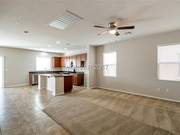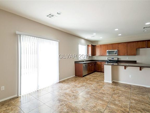 Move-in ready 4 bed/2.75 bath home in North LV community. Large lot & back patio! New paint thru out! Kitchen has new stainless appliances, granite counters, island w/breakfast bar, tile flooring, recessed lighting, eating space, backyard access, and opens to family room. Spacious upstairs loft bonus areas! 1 bed/1 bath down. Large master has ensuite bath w/dual sinks, sep shower, sep tub. Must See!!