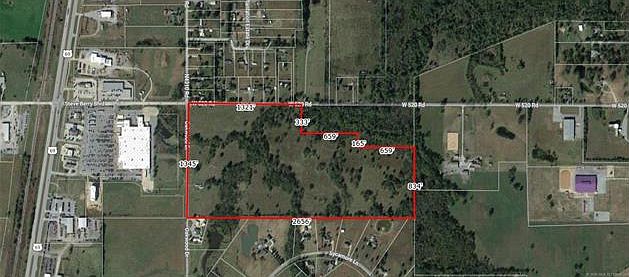 This 68+ acres is ideally located for development. Located directly behind Wal-Mart on the Corner of Oakwood Drive and 520 Rd. There is approx. 30 acres out of the flood plain. Bordered on 2 side by county blacktopped road. Utilities available and sewer line is in place.