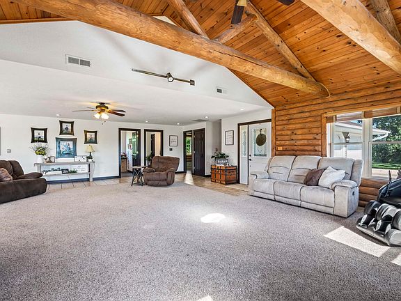 Welcome to your dream home just outside of Edgewood, Iowa! Nestled on a 1.89 acre lot, this beautifully renovated property offers a perfect blend of rustic and modern charm! The main floor features a large kitchen complete with a large pantry, Kendrick cabinetry and seamlessly flows into a spacious dining room, ideal for family gatherings and entertaining guests. The expansive living room boasts stunning log vaulted ceilings, creating a warm and inviting atmosphere. Off the garage, you'll find a convenient mudroom, office space, and an additional bathroom. The basement is designed for comfort and functionality, featuring three bedrooms, including a non-conforming bedroom, and a luxurious master bathroom. Enjoy ultimate relaxation in the jacuzzi tub of the master bath. Sit in the lower level family room and enjoy the warmth of the wood burning stove. This home was completely gutted and remodeled in 2011, with significant enhancements including a new dining/kitchen area and an expanded basement beneath it that houses the master suite. Experience country living at its finest with this exceptional property. Don't miss the opportunity to make it yours!