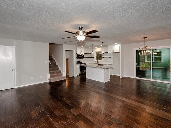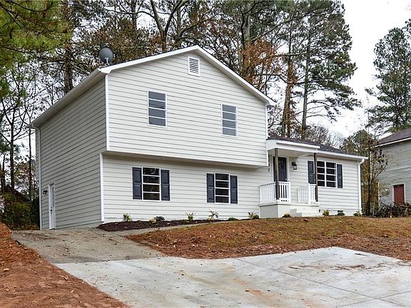 Charming renovated home in Kennesaw! New flooring throughout! Open concept main level! New kitchen w/ white shaker cabinets, light speckled granite, SS appliances, custom light fixtures & trendy floating industrial shelves w/ shiplap! Kitchen island has more storage & bar seating! Covered back porch is perfect for entertaining! Master suite upstairs w/ private full bath! 2 other bedrooms share hall bath. New carpet & paint! Lower level has seperate laundry room, additional 4th bedroom, & another cozy living room w/ exterior entrance! Great level wooded private backyard!