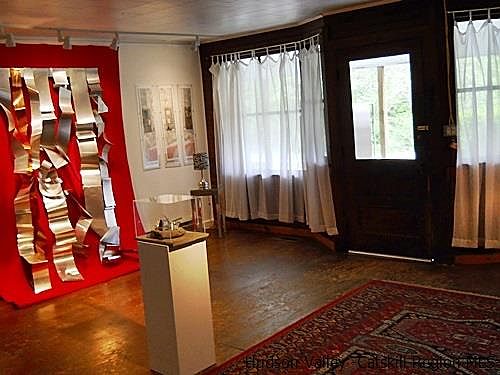 This historic two family, two story house was once the Lake Hill Post Office and offers many opportunities for someone looking for a work/live space or for investment purposes. Enter the main floor of this charming house into a versatile, Great Room and enjoy a wonderful living space. Currently used for show casing art, it can also be used for conducting classes. The light filled enclosed, 250 plus square foot porch currently is the owner/ artist's studio. There is a separate office or possibly another bedroom off a large bathroom/ laundry space. An eat-in kitchen with its own screened in side porch features a shiny copper stove hood. A dining room is alternately a sitting room. A spacious master bedroom with a large walk in closet is adjacent to a renovated bathroom. Another bedroom is on the second floor. The second floor, two bedroom apartment is suffused with light. It has its own drive way and entrance, a private deck and yard, and features hardwood floors throughout. There is an eat-in kitchen with a dishwasher, a full bathroom with a claw foot tub, and numerous closets with ample storage. This property's large back yard is level and offers considerable space for playing and lazing beneath the mature trees.
