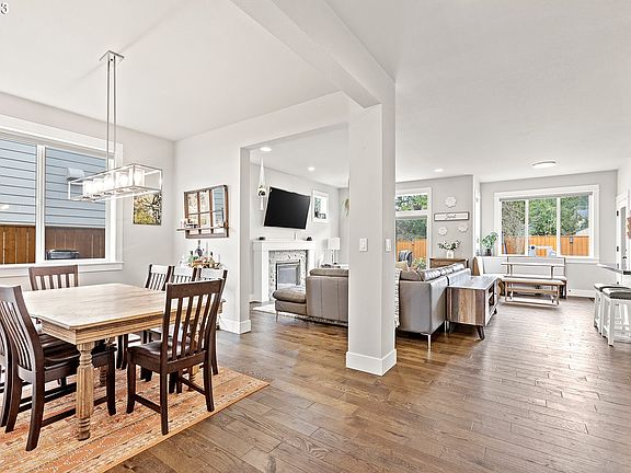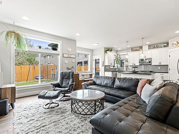 This is a 2020 Modern great-room plan w/numerous upgrades built by Clearwater Homes, a local OR builder. 400+ sqft of fabulous covered outdoor living space fenced w/ SS kitchen, quartz island, turf, & pergola w/fire pit. The stunning interior has contiguous hardwood floors & Hi ceilings throughout the main. The upper level has a fun family/flex space,4 full bedrooms, a roomy primary suite w/ walk in closet & soak tub bathroom w/ a mix of quartz & tile surfaces. 3 car tandem garage for hobby/car storage and more.