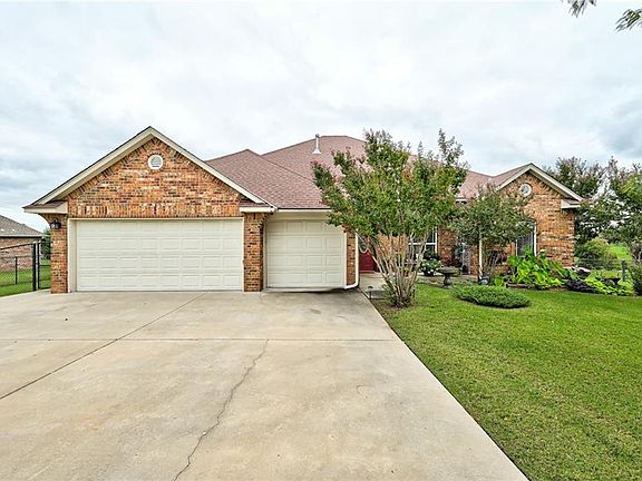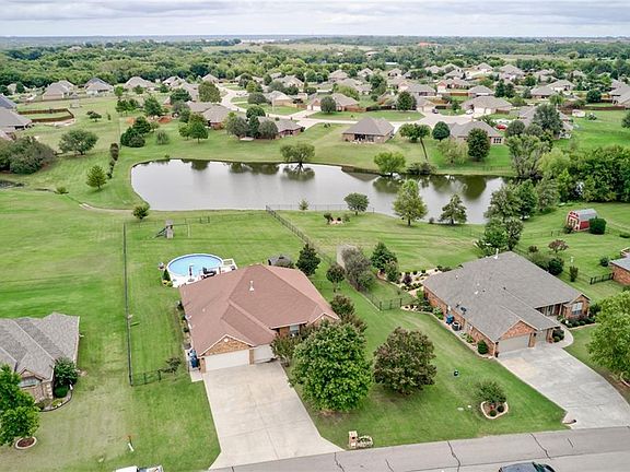 Hard to find 1 acre lot on private pond with excellent fishing. Very private and secluded subdivision. Back yard faces the East so it is perfect for outdoor BBQ & pool parties. Above ground pool with 1400 square feet of deck and patio with 2 patio covers. One cover is 10x12 and one is 10x10. 6 gates into the backyard which includes one double drive. Beautiful trees and landscaping. 3 car garage. New interior paint all throughout. Granite kitchen countertops. Custom wood trim and cabinets. Large jetted tub in master. Newcastle schools with option of Norman.