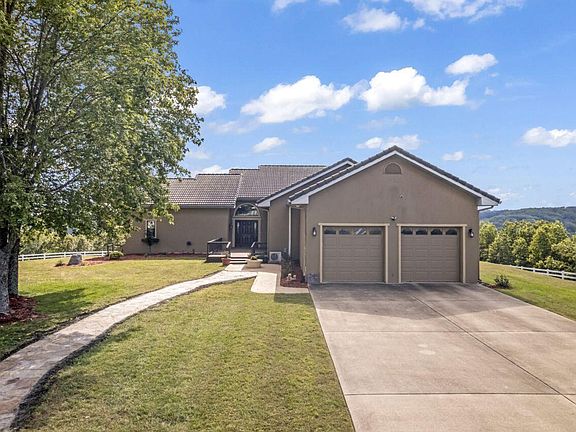 Price Reduction Alert! This home is priced to sell quickly. Don't miss out on this incredible opportunity!Introducing a luxurious mountain retreat in the heart of the Ozarks! Located just 11 minutes from Branson and 35 minutes from Springfield! This 5-bedroom, 4-bathroom home boasts stucco siding, a classic clay tile roof, and metal framing. Upgrades include a newly replaced clay tile roof and ongoing bathroom updates, adding modern touches to complement the home's timeless design. Over $100,000 in upgrades! Sitting atop a sprawling 38.19-acre estate, this property offers unparalleled privacy and breathtaking panoramic views of the Ozark Mountains. The property is surrounded by beautiful electrical vinyl fencing. As you approach, the long, impeccably paved driveway welcomes you to your own secluded paradise. In the timber, you will find a natural spring.This 6,129-square-foot residence features an open concept design that seamlessly blends the interior with the picturesque surroundings. Ample windows flood the space with natural light, accentuating the home's beauty.Step outside onto a generous deck that spans the length of the home, offering the perfect setting for outdoor entertaining or simply soaking in the tranquil mountain scenery.The walk-out basement reveals a spacious recreation room with a large wet bar, and a wine room providing a fantastic space for gatherings. With metal framing replacing traditional wood, this was built to withstand the test of time. Don't miss your chance to own this one-of-a-kind mountain estate, where luxury meets the serenity of the Ozark Mountains. This is a truly unique opportunity.Additional acreage also available! 10, 10, and 6.8 acre tracts. See MLS # 60261300, 60261302, 60261301