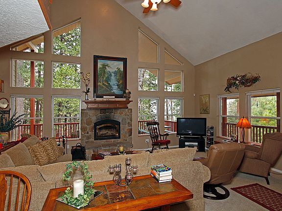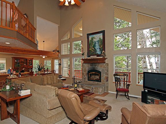 Beautiful 3 bedroom 2.5 bath cabin on 5.7 acres offers privacy and seclusion with all the modern amenities. Gorgeous floor to ceiling windows bring the forest and mountain colors in to the great room with vaulted ceiling. The Master Bedroom Suite with jet tub is downstairs. 2 additional spacious bedrooms are upstairs with a shared bathroom and large loft which overlooks the great room below. The kitchen has everything you could ask for including a large pantry, gas cook top and a large center island. Covered redwood decks, a two car garage, paved parking areas and a special mountain view make this property a must see and a great value.