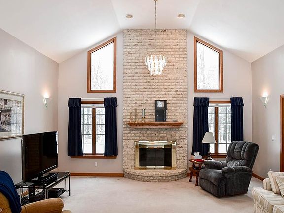 Wonderfully maintained 3 bedroom, 2.5 bath all brick ranch in Green LSD! The picturesque 17x11 front porch with stately columns gives this home fantastic curb appeal. Through the front door, you'll enter the impressive great room with cathedral ceilings, a gas fireplace with a brick mantle and tons of natural light. Everywhere you look, light pours in through the large windows to open the spaces and bring the outside into your home! The fully applianced eat-in kitchen offers a dinette with skylights, a breakfast bar, pantry and a double sink. First floor laundry by the 2-car attached garage makes for a convenient drop spot. You'll love how much privacy the split bedroom design offers! The master suite has its own section of the house with private access to the backyard and a private full bath including a walk-in closet, skylight, double sinks, jetted tub and separate shower. Head downstairs to the massive basement and you'll find amazing storage space, high ceilings for an easy finish and a 25x13 rec room! Newer furnace/AC in 2012, too. Out back, there's a patio with mature trees surrounding for privacy. Great location tucked away in a quiet neighborhood near schools, shopping and Central Park! Come see all this home has to offer!