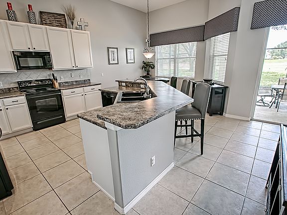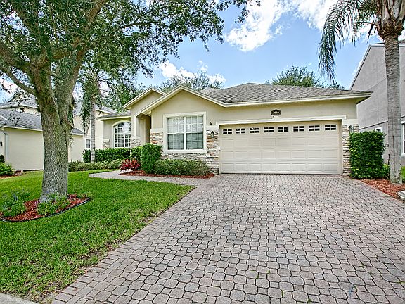 Back on the Market Due to Buyer Financing! Welcome to this 4 bed 2 bath home boasting 2,088 sf of well designed living space. Curb appeal is maximized by a mature shade tree in the front yard, paver driveway leading to the two car garage and stacked stone façade. The entry leads to the formal dining and formal living room at the front of the house. As you continue you'll make your way to the open family room and kitchen area. The kitchen includes upgraded stainless steel appliances, tiled backsplash, 42" cabinets, pantry, eat-in bar and adjacent casual dining area. The family room overlooks the fully screened and covered lanai, with private fenced backyard. Enjoy eating alfresco year round! The master suite opens to the lanai through sliding glass doors, and the master bath features dual sink split vanity, soaking tub, glass enclosed shower and separate water closet. Additional beds and bath will easily accommodate overnight guests, family and/or office. Upgrades include new ROOF, A/C, water heater, garbage disposal, fans and lights. This home is located in Clermont's Ledgends community, less than a half mile to the community pool and clubhouse. HOA includes INTERNET, PHONE, CABLE. The community owns its clubhouse that has fitness equipment, grills, meeting rooms, TV/Library room, pool, playground, basketball and tennis courts. Close to shopping, dining and downtown Clermont. Call now to schedule your showing!