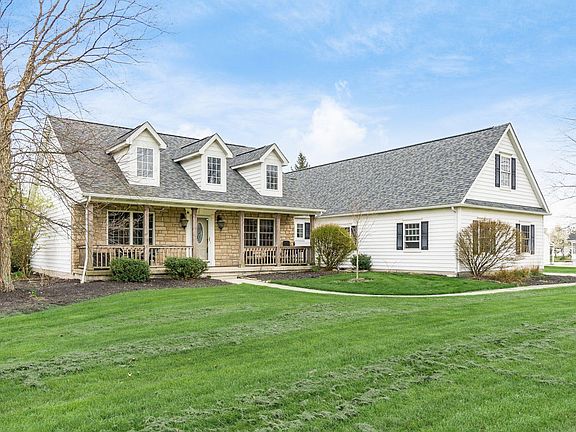 Welcome to your stunning 1.64 acre ranch-style home! Beautiful southern exposure floods this open floor concept providing ample natural light throughout the day. Soaring vaulted ceilings with skylights and dormers create a sense of spaciousness in the great room. Flowing into the kitchen with a large island surrounded by 42'' cabinets with 18'' tile floor with built-in appliances. The large primary first floor bedroom has a door that leads to your private deck along with ample storage in the primary bathroom/walk-in closet. Two bedrooms on the opposite sides of the home share a bathroom. The fourth bedroom above the 3 car garage offers a 3rd full bath rough-in. This home sits on a private 1.64 acre lot with Olentangy schools. Delco water, gas at street, sewer at rear and no HOA.