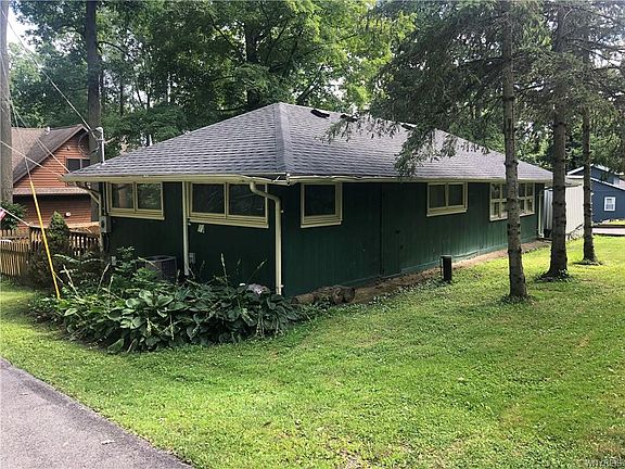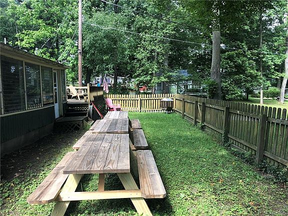 Dreaming of the perfect seasonal cottage but can't get to the waterfront yet? Here's your house! 2 bedroom, 1 1/2 baths, huge space for entertaining porch and outdoor area. Large, blacktop driveway, close to The Club at Silver Lake! Lake and alumadock are just down the road. Park your golf cart in the double door 12x12 shed with concrete floor and electric to make it easy getting to the course or the lake! Built-in sandbox at top of driveway. On the surrounding fence, the latches are on the exterior for safety. Views of the lake from the deck or the master bedroom French doors! Central air to cool things off in the summer or can provide heat to take the chill off and extend your season well into fall or early spring! This is the perfect time to buy to be ready to go for this season!