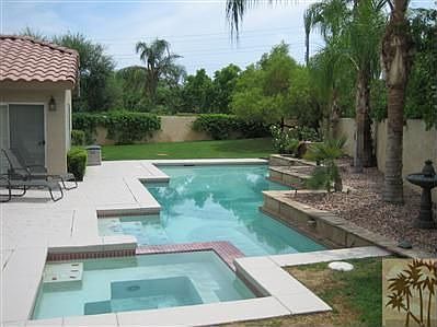 Regency Estates Largest model with 3915 sq. ft of living space. It has 5 bedrooms, 3 car garage, pool, and large lot on a cul-de-sac. Downstairs Master suite has fireplace, double mirrored walk in closets, sunken tub, and vanity. Two of the 4 bedrooms are mini-suits with bathrooms, one downstairs. Living room has fireplace and wet bar, family room has fireplace and built-in desk, both have sliding glass windows to the back yard patio. Kitchen has double oven, gas range, granite counters and dinette area, but there is a formal dining area too. Room for large family, extended family or a lot of guests.