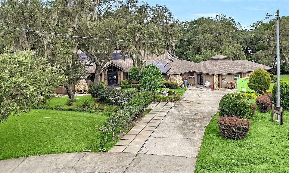 If you’re seeking a haven where solitude meets a true sense of home, 39939 Lake Norris Road is your ideal destination. This private sanctuary, located amidst the untouched beauty of Old Florida on Lake Norris, spans 6.55 acres and offers the ultimate blend of serenity and space. Imagine starting your day to the melodies of Florida’s native birds, casting a line on a tranquil 1400-acre lake reserved for homeowners' motorboats, and enjoying the view of tropical flowers swaying in the breeze from your own private lakefront. The main residence, nearly 5,000 square feet, is crafted with nature enthusiasts in mind. It includes 4 bedrooms and 3 bathrooms, while an additional rental cottage features 3 bedrooms and 2 bathrooms, totaling 7 bedrooms and 5 bathrooms. Upon entering, you’ll be captivated by the brand-new hardwood floors, skylights illuminating planter features, and the rich hardwood beams complemented by large ceiling fans. The impressive gas fireplace and wet bar make entertaining a breeze, and the expansive views of the lake are nothing short of breathtaking. The primary suite is a luxurious retreat, boasting a spacious ensuite bath with a jacuzzi tub, walk-in shower, and ample closets. It also includes a gas fireplace with built-in shelving and a fantastic library/loft area above. Recent updates include a major rebuild and expansion of the deck, along with a paid-off solar system that keeps power bills remarkably low ($1-100 a month, the highest bill in the heat of summer!). French drains have been added at the front of the house, and the backyard is fully fenced, making it perfect for pets. The property has two septic systems and pulls its water from the lake, so it is truly self-sufficient! The modern kitchen is equipped with stainless steel appliances, an induction stovetop, hardwood cabinets, and granite countertops. Additionally, the property features orange groves, a rental unit for a groundskeeper or extra income, and the option to embrace an agricultural lifestyle. Imagine picking fresh fruit, feeding chickens, gathering eggs, fishing from your dock, and enjoying a sunset boat ride. If you’ve been searching for an estate that combines privacy, natural beauty, and a touch of country living, this property is your perfect match.