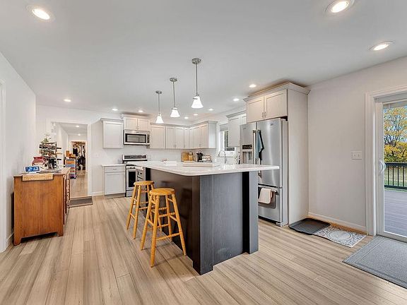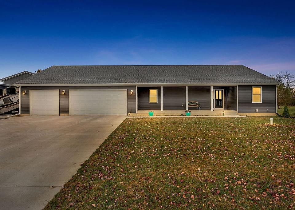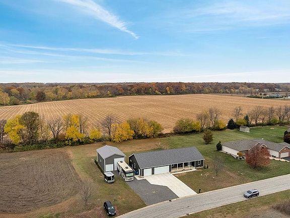 As you enter this 2020 built ranch you will be greeted with a spacious foyer opening into the open concept living room kitchen combo. The kitchen has large cabinets, an oversized island, seamless coriander countertops, stainless steal appliances, and walk in pantry. The large main bedroom has a spacious bathroom with double sinks, a walk in shower, and a closet that could be it's own room 14x6. The two additional bedrooms are adjoined by a shared full bath. The finished main floor laundry room has plenty of room for all your storing needs. A composite style deck is right off the living room sliding glass door overlooking your just under one acre property. A 40x24 foot pole barn with two overhead doors; one of them large enough to pull a RV motor home in is perfectly located next to your 3 car attached garage. A ramp is located in the garage to make this home barrier free. And let's not forget the basement is just waiting to be finished. Plumbing for a bath and wet bar are done.