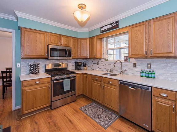 Quintessential colonial set in charming community is move-in ready!Sun-drenched LR w/gorgeous built-ins,invites to Chef'sKIT w/variated stone backsplash,white silestone counters,stainless appli&statement lighting!Step outside to TREX SIP w/cathedral ceilings,looking to open yard w/slate patio &mature landscaping!NEW finished LL incl.recRM,laundry &bonusRM!Welcome home!
