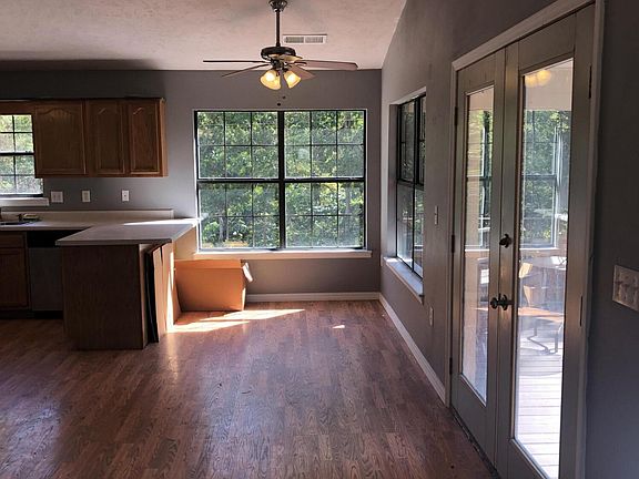 Sit out on your front deck and listen to birds and drink your morning coffee. An open concept living space in a rural setting on 4 acres set among mature trees and shrubs. A second home which could be utilized as a guest house/storage, man cave and art studio. (window a/c unit.) Small town living with only 8 mins to Hwy 65 and Walmart. Great Schools. Kids paradise with a live water creek year round. Refrigerators, washer and dryer convey. Window A/C conveys.