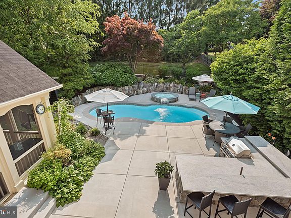 Enjoy your own private retreat style living in this beautiful brick front Colonial sited on a corner lot in Ellicott City’s desired Burleigh Manor community. This pristine home boasts a dream backyard with a heated swimming pool, hot tub, and grilling station. Enter the two-story foyer showcasing wide archways leading to the living and dining rooms, highlighting gorgeous hardwood flooring, accent molding, and a soothing neutral color palette. The kitchen features Brazilian cherry hardwoods, an island breakfast bar, granite countertops, a breakfast room, and stainless appliances including an electric range, built-in microwave, and French door refrigerator. A stacked stone fireplace becomes the focal point of the off kitchen family room under a high vaulted ceiling, and offers access to the screened porch. There’s an entry level office, and mud room to the garage. Ascend the staircase to the primary bedroom suite offering a walk-in closet, and en suite bath with a granite makeup and dual granite vanities, and a glass enclosed steam shower with seating. Three additional bedrooms, and 2 full baths complete this level. The lower level provides a media room, exercise room, bedroom, full bath, a laundry room, and a finished storage room. Outdoor living at its best in the entertainer's dream backyard offering a heated swimming pool with waterfalls and fountains, a hot tub, and grilling station with bar seating for 8. Updates include the HVAC, kitchen, baths, flooring, paint, landscaping, decking, pool, and more!