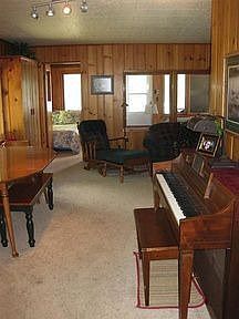 Charming vintage 2BR knotty pine cabin with perfect elevation and sand beach area,lakeside sunroom with vaulted ceiling,newer windows, laundry,RV hook-up,paved boat ramp,etc. Cabin has electric heat, electric fireplace,and is fully furnished including dock/lift. Hard to find clean,turn-key cabin,good repair and on a private road.