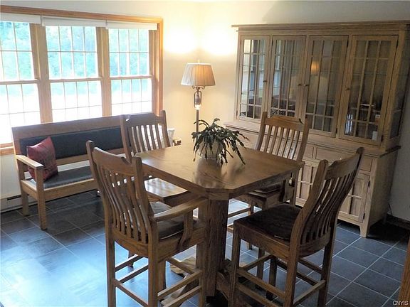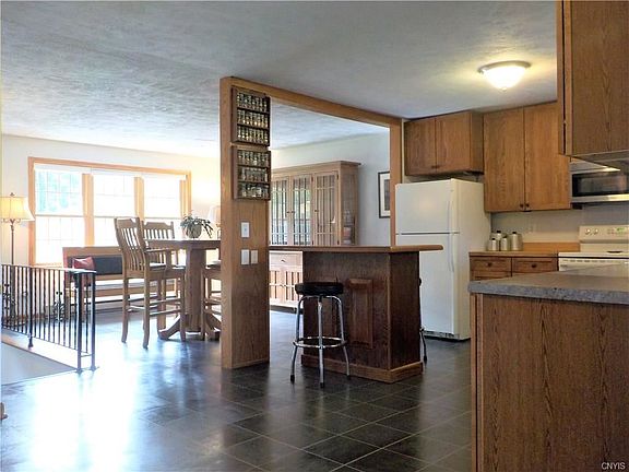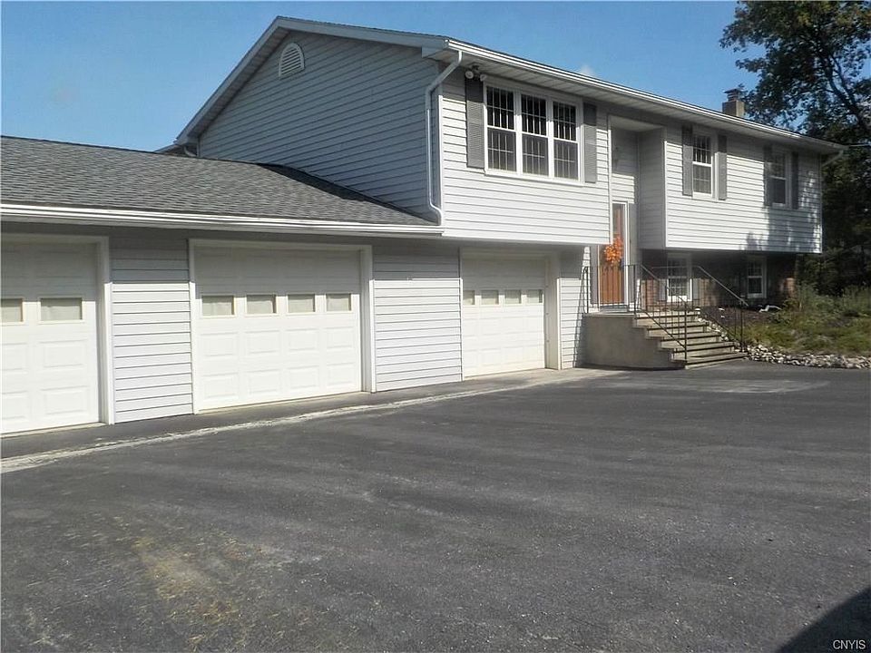 Country living at it's best! This renovated Raised Ranch is move in ready and waiting for it's new owner! Situated on over 6 acres w/Clockville Creek in your backyard. Enter the upper level of your new home & you will find a renovated kitchen & dining room area with newer cabinets, flooring & some windows. The living room area feels like you are in your own personal tree house with views of your property & bird watching. There are 3 bedrooms & a renovated full bathroom on this level as well. The lower level family room has a pellet stove to help heat your home. A 1/2 bathroom & office area are also on this level. 3 stall attached garage, patio/deck overlooking your yard, large pole barn for your business or summer toy storage & creek with trout fishing complete this spectacular property.