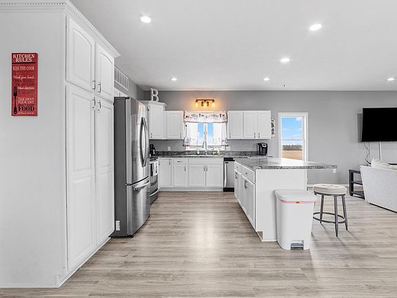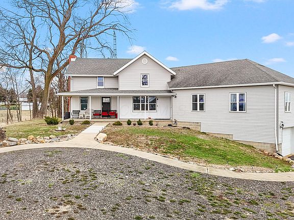 Charming Farmhouse with Modern Upgrades - a beautifully renovated farmhouse on almost 4 acres of serene countryside! This 4 bedroom, 2.5 bath home seamlessly blends historic charm with modern comforts. Step inside to discover an open floor plan with new laminate vinyl plank flooring. The spacious great room offers panoramic views, creating a bright and inviting atmosphere. The updated kitchen boasts sleek finishes, perfect for entertaining! Recent upgrades include vinyl windows, HVAC, furnace, pressure tank, water heater and a Culligan water softener - ensuring worry-free living. The massive 4-car garage is ideal for car enthusiasts, extra storage space, or a workshop! If you're seeking both style, and tranquility, this home is a must-see! Schedule your private tour today!