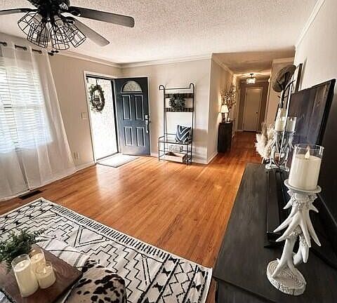 This stunning remodeled and renovated modern farmhouse is an absolute dream. With its industrial flair and rustic charm, this home perfectly combines the best of both worlds. As you enter the home, you are greeted by a living space featuring a spacious and bright living room, dining room, and kitchen. The kitchen is a true delight, with a gorgeous sleek shiplap backsplash adding a touch of farmhouse charm, while giving a cozy and inviting atmosphere. White cabinets, and beautiful 100% food safe butcher block countertops. The warm tones of the butcher block countertops complement the industrial aesthetic, creating a contemporary and stylish space. The home boasts three bedrooms, providing plenty of space for a growing family or guests. Each bedroom is spacious and bright, with large windows that allow for natural light to flood in. The master bedroom features an en-suite bathroom, complete with luxurious features adding a modern twist to the traditional farmhouse aesthetic.