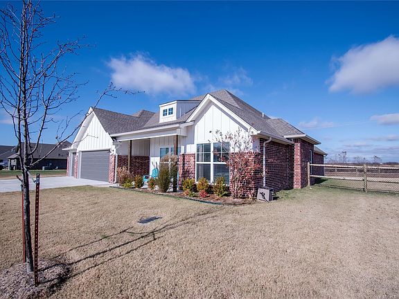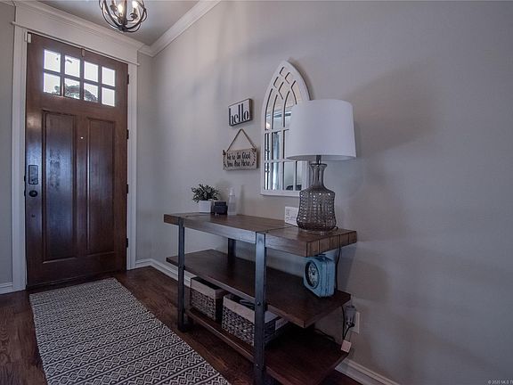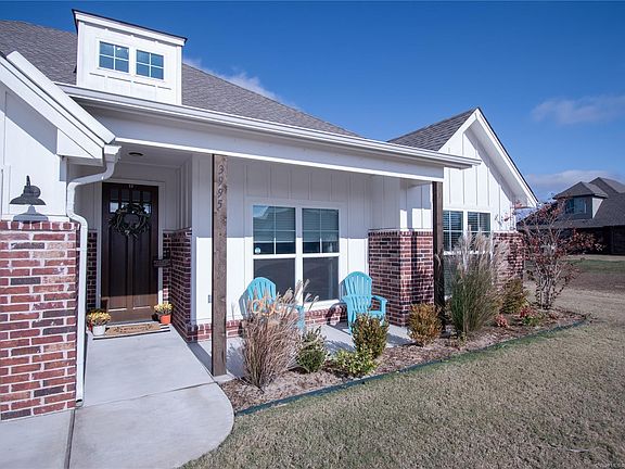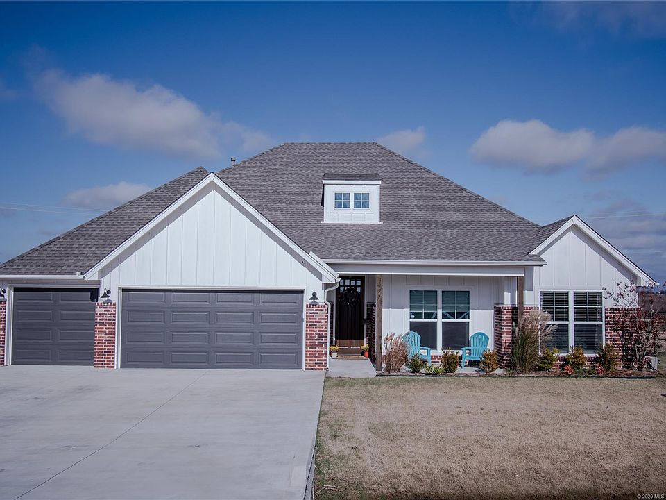 Open/split plan, 4 beds or (3 & office), 2 bths, mud room, 3 car garage. Hand-scraped hardwoods in entry, living, hall, mud room, master, & 4th bed/office. Living w/gas log FP. Island kitchen w/ vaulted/beamed ceiling, granite, SS appliances, & large walk-in pantry. Master w/tapered tray ceiling, seasonal walk-in closet, and private bth w/WP tub, door-less walk-in shower, and dbl vanities. Laundry w/great storage. Security system. Exterior w/split rail fence, covered porch & patio. Backs to greenbelt.