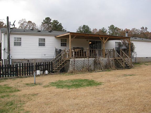 Country living- home with 11 +/- acres. 3BR/2BA mobile. 2 car detached carport. Double-wide mobile on permanent foundation. Island in eat-in kitchen. Whirlpool tub. Walk-in closets. Gas log fireplace in living room. Propane tank owned. Utility building with electric. Front & rear covered porches. Fenced in rear yard. Great hunting. Located only minutes from shopping and conveniences.