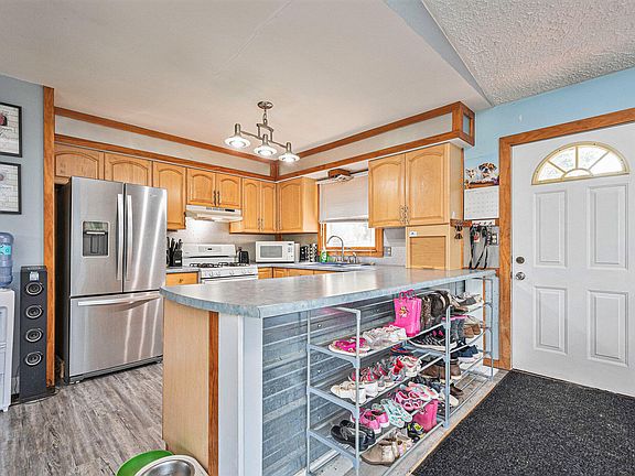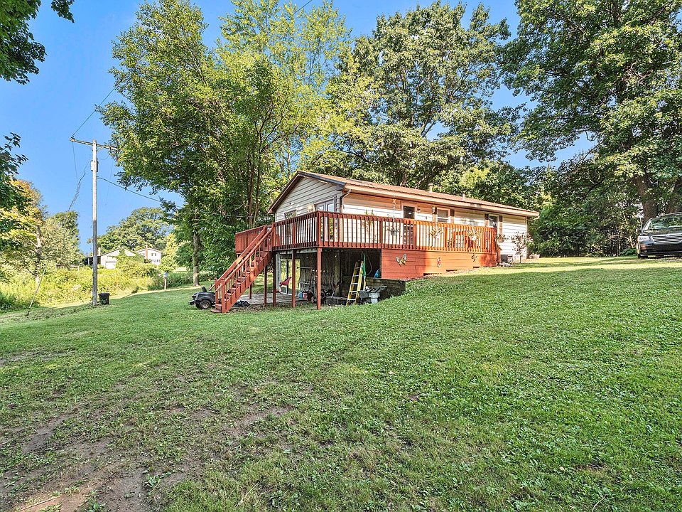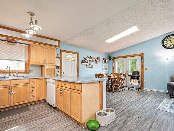 You are going to love the country setting of this stick-built home AND the open plan -cathedral ceiling kitchen/dining/living area! Feels so spacious! 3 bedrooms on the main floor, cool full bath with jet tub, kitchen with snack bar and walk-in pantry and ALL appliances are included. Downstairs is a large rec room with sliders to patio, a non-conforming 4th bedroom or home office has lots of potential along with laundry room and storage areas. Enjoy the setting of this home with enough space for your own chickens, fire pit and area to roam and plenty of deck space for relaxing, grilling and gatherings! Metal roof for long term durability! ANY/ALL offers due 8/17/23 at 3pm