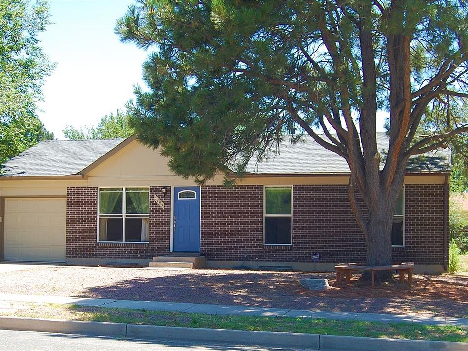 Completely remodeled in 2014 & looks like it was never lived in! Brick rancher with bright, open floorplan and wood floors throughout main. Kitchen has custom 42" Maple cabinets, glass tile backsplash, granite counters and SS appliances. Remodeled full baths main & basement. 3 beds on main level and 1 in basement. Add'l room in basement can be used as office, playroom or storage. Large basement family room w/ wet bar. Newer carpet in bedrooms and basement. Furnace, water heater & electrical panel new in 2014. New roof 2016. Extended 1 car garage w/ built in shelving. Low maintenance xeriscaped front yard. Large, fully fenced backyard with wrap around wood deck and picnic table to enjoy views of Cheyenne mountain. Room for RV parking on side. Brand new solar panels on the roof make the electric bill almost non-existent!