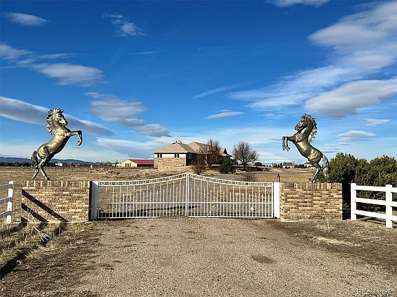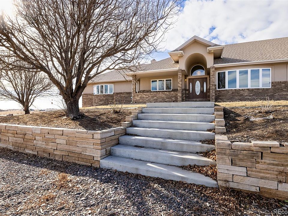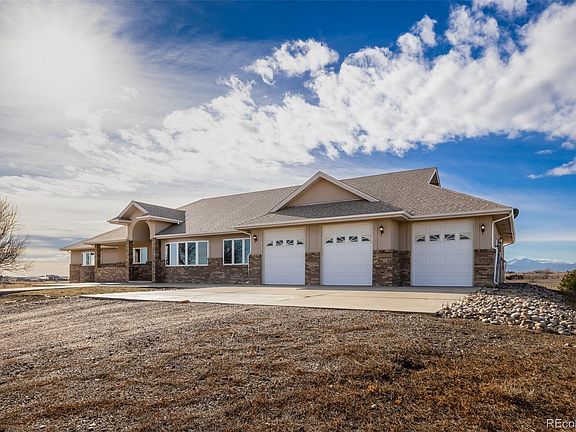 Nestled on 35 picturesque acres with breathtaking views of Longs Peak and the Front Range, this exceptional 6,000 sq. ft. brick and stucco ranch offers luxurious main-level living complemented by a fully finished walkout basement. With 5 bedrooms and 6 baths, this home blends elegance and practicality in every detail. The spacious primary suite is a private retreat, complete with a cozy gas fireplace, bow window, walk-in closet, soaking tub, and double-sink counters, all framed by stunning mountain views. The gourmet kitchen, designed for both form and function, features granite tile countertops, 42” oak cabinets, stainless steel appliances, and a striking tray ceiling, while the vaulted living room boasts a gas fireplace and walkout deck, ideal for entertaining or relaxing in the serene setting. The lower level expands the living space with a sprawling family room featuring a granite wet bar, gas fireplace, and access to the backyard, along with additional bedrooms, ample storage, and a hidden safe room cleverly concealed behind bookshelves. Perfect for equestrians or hobbyists, the property includes a 40x50 workshop/stable with a concrete floor, 4 stalls, paddocks, turnouts, water, gas, and a 10” door, as well as whiteboard fencing in the front yard and cross fencing in the rear. Multiple exterior water spigots and a meticulously finished oversized 3-car garage with a coated floor and hot/cold water hookups further enhance convenience. Terrazzo flooring, found throughout the home, adds timeless beauty and durability. Situated just minutes from Boyd Lake State Park, Highland Meadows Golf Course, and premier shopping and dining at Crossroads Plaza and The Promenade Shops at Centerra, this property offers the perfect balance of luxury, functionality, and accessibility. Experience the best of Colorado living with endless possibilities for creating your dream lifestyle on this one-of-a-kind estate.
