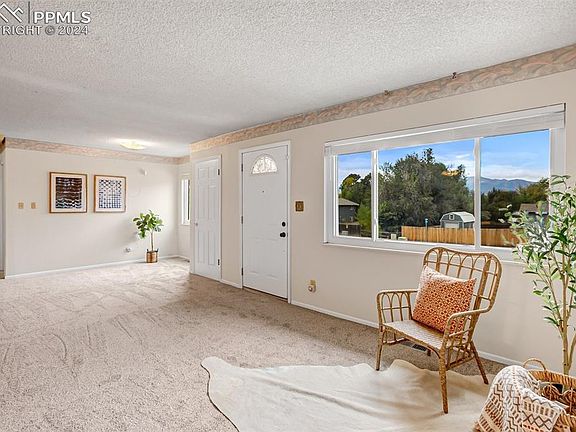 This comfortable ranch style 4 bedroom home has been just refreshed, including NEW carpeting throughout, new luxury vinyl plank, and new interior paint! If you have missed this home in its previous months, now is the time to visit! Incredible West facing Pikes Peak views! Main level of the home includes a large living room overlooking Pikes Peak adjoining a nice seating area that once was home to a baby grand piano, and can also be used for a formal dining set. Informal dining area is situated adjacent the kitchen with a built-in buffet cabinet for extra kitchen storage. Kitchen includes newer appliances, and new LVP flooring. 2 main level bedrooms are served by a full bathroom. Lower level family room includes a natural gas fireplace, built-in wood cabinetry, and 2 additional bedrooms, served by a 3/4 bathroom. Laundry is located in the lower level with a storage area/shop in the utility area. A whole house fan in the main level of the home helps keep the home cool in the summer months. 2 car garage attached to the main level includes a commercial heater, and workbenches for the tinkering type. Terraced front yard gardening areas, and mature flowering crab apple and lilacs adorn the yard. Driveway and garage are accessed from the side street Crimson, for ease of accessibility. 11 x 12 storage shed is situated in the rear yard. Location is wonderful! This could be your perfect home, come take a peek at the new updates that have transformed this home!