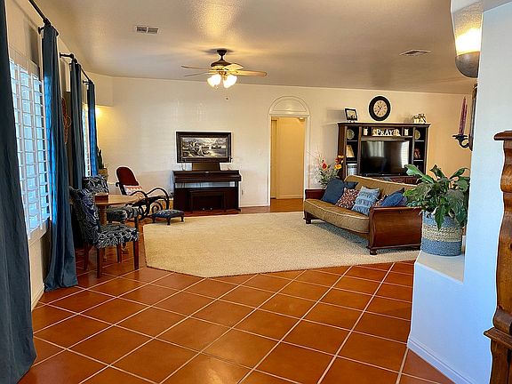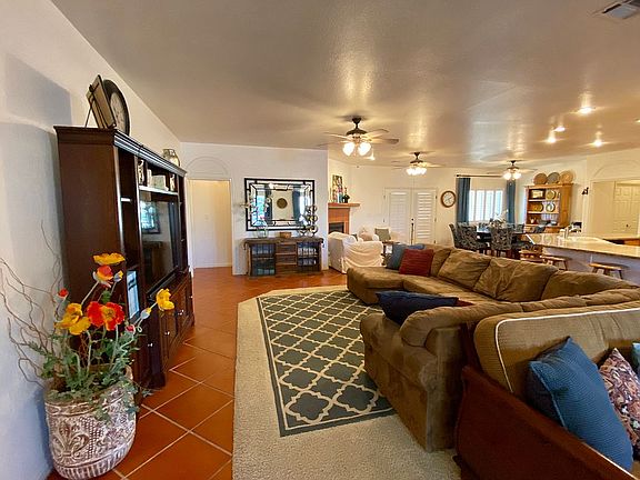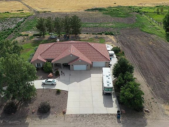 Great open concept floor plan! This spacious 3,018 SF spanish style rambler is set on a 2.61 acre lot in a quiet neighborhood. This country home has plenty of room for kids, horses, & no HOA fees! 4 oversized bedrooms, 3 full baths. All bedrooms have large closets with built in shelving. Spacious master bedroom w/ French doors & backyard access. Master bath includes walk in closet, double sinks, jetted tub, & walk in shower w/ dual shower heads. Large kitchen includes granite counter tops, double oven, induction cooktop, & wraparound bar, perfect for entertaining. Fireplace in sitting/dining area. Large laundry room w/ cabinets, closet, & attic access. Granite counter tops throughout. 9 ft. Ceilings. Double pane/storm windows with plantation shutters. 2x6 construction used for all external walls for added insulation. 1,584 SF attached 6 car garage/shop that is air conditioned & heated. Water softener. RV/Boat parking, huge concrete driveway, covered front & back patios, fire pit, sprinklers w/ drip system, large trees & mature landscaping. Front & back patios are covered. Back patio includes outdoor fireplace, ceiling fans, built in barbecue, & hot tub hook ups. This is a must see! Drone footage available upon request.