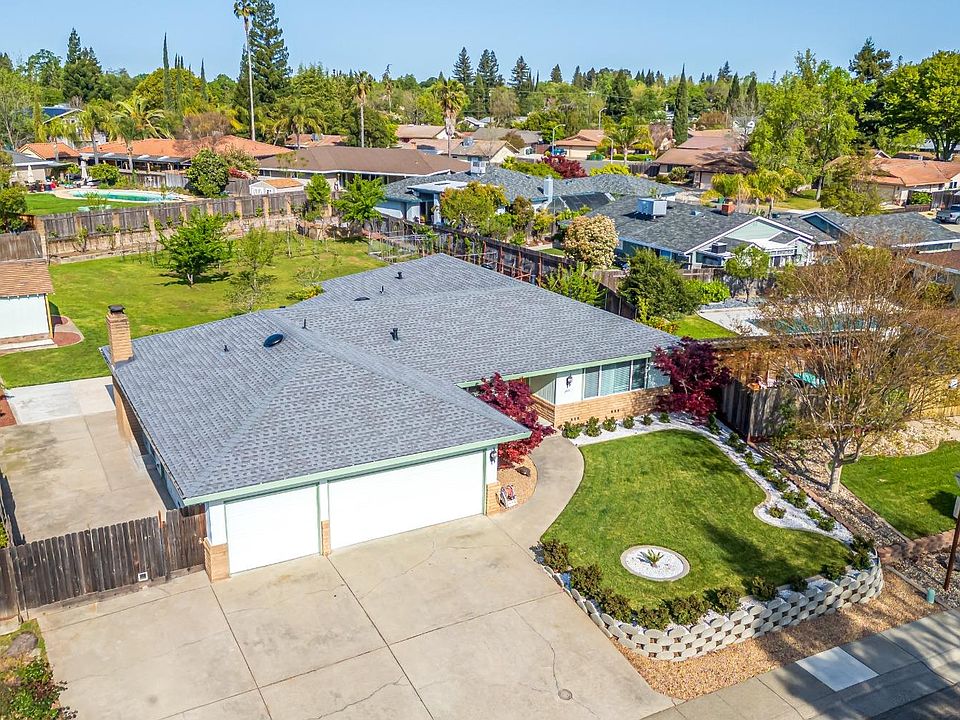 Quality custom built home buy a craftsman-owner. Kitchen, bathrooms and roof have all been replaced in the last 2-10 years. Custom kitchen cabinets, granite countertops, stainless appliances and breakfast bar, formal dining room, additional dining area off the kitchen. Home has lots of storage in the walk-in pantry which has a refrigerator. Convenient laundry room/bathroom has access to the outside. All bedrooms are large and bright. Primary has access to the back patio and view of the lovely yard. Dual vanity awaits in the hall bath with granite countertop and light tile in the shower. Three car garage has shelving and workshop space. Attic platform provides huge additional storage area. RV access with concrete pad. Wood fencing has metal support posts. Yard has large storage shed. Many dual pane windows, whole house fan, radiant barrier roof sheeting, two attic vent fans and upgraded insulation all help keep this home comfortable and affordable. Fireplace with woodburning insert set in beautiful granite surround is in the living room off of the kitchen. Yard has many fruit trees: apricot, SR plums, fig, tangerine and pluot. Small vineyard of 50 vines of Muscat and Concord varieties all bearing fruit. Wonderful neighborhood, close to everything!